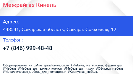 Межрайгаз Кинель по адресу 443541, Самарская область, Самара, Совхозная, 12 в дальнейшем Организация, размещена в следующих категориях: