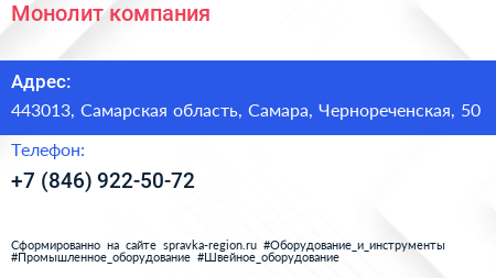 Монолит, компания по адресу 443013, Самарская область, Самара, Чернореченская, 50 в дальнейшем Организация, размещена в следующих категориях: