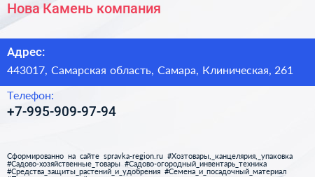 Нова Камень, компания по адресу 443017, Самарская область, Самара, Клиническая, 261 в дальнейшем Организация, размещена в следующих категориях: