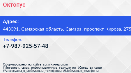 Октопус по адресу 443091, Самарская область, Самара, проспект Кирова, 275 в дальнейшем Организация, размещена в следующих категориях: