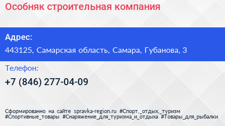 Особняк, строительная компания по адресу 443125, Самарская область, Самара, Губанова, 3 в дальнейшем Организация, размещена в следующих категориях: