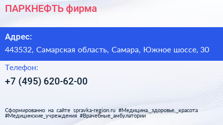 ПАРКНЕФТЬ, фирма по адресу 443532, Самарская область, Самара, Южное шоссе, 30 в дальнейшем Организация, размещена в следующих категориях: