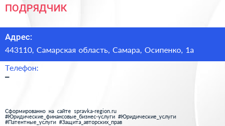ПОДРЯДЧИК по адресу 443110, Самарская область, Самара, Осипенко, 1а в дальнейшем Организация, размещена в следующих категориях: