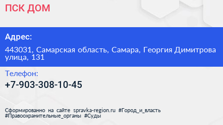 ПСК ДОМ по адресу 443031, Самарская область, Самара, Георгия Димитрова улица, 131 в дальнейшем Организация, размещена в следующих категориях:
