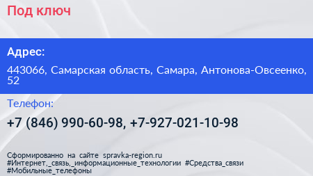 Под ключ по адресу 443066, Самарская область, Самара, Антонова-Овсеенко, 52 в дальнейшем Организация, размещена в следующих категориях: