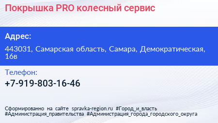 Покрышка.PRO, колесный сервис по адресу 443031, Самарская область, Самара, Демократическая, 16в в дальнейшем Организация, размещена в следующих категориях: