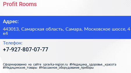 Profit Rooms по адресу 443013, Самарская область, Самара, Московское шоссе, 4 к4 в дальнейшем Организация, размещена в следующих категориях: