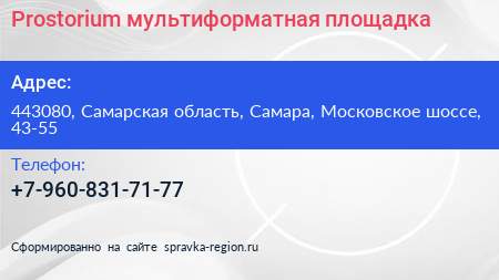 Prostorium, мультиформатная площадка по адресу 443080, Самарская область, Самара, Московское шоссе, 43-55 в дальнейшем Организация, размещена в следующих категориях: