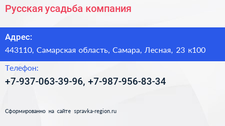 Русская усадьба, компания по адресу 443110, Самарская область, Самара, Лесная, 23 к100 в дальнейшем Организация, размещена в следующих категориях: