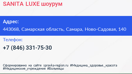 SANITA LUXE, шоурум по адресу 443068, Самарская область, Самара, Ново-Садовая, 140 в дальнейшем Организация, размещена в следующих категориях: