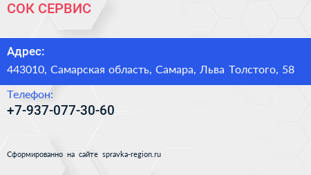 СОК СЕРВИС по адресу 443010, Самарская область, Самара, Льва Толстого, 58 в дальнейшем Организация, размещена в следующих категориях: