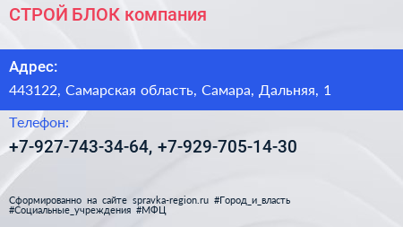 СТРОЙ-БЛОК, компания по адресу 443122, Самарская область, Самара, Дальняя, 1 в дальнейшем Организация, размещена в следующих категориях: