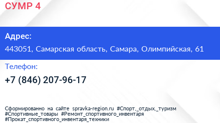 СУМР №4 по адресу 443051, Самарская область, Самара, Олимпийская, 61 в дальнейшем Организация, размещена в следующих категориях: