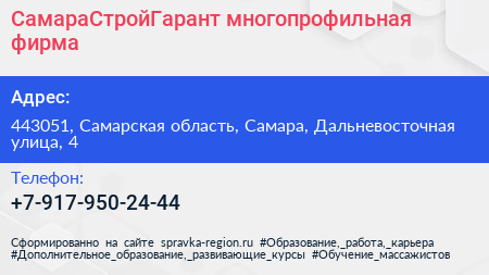 СамараСтройГарант, многопрофильная фирма по адресу 443051, Самарская область, Самара, Дальневосточная улица, 4 в дальнейшем Организация, размещена в следующих категориях: