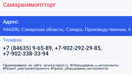 Самарахимоптторг по адресу 446200, Самарская область, Самара, Производственная, 4 в дальнейшем Организация, размещена в следующих категориях:
