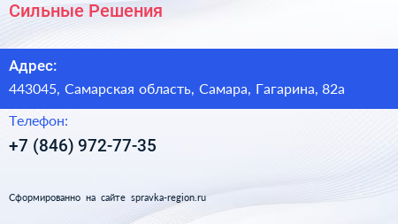 Сильные Решения по адресу 443045, Самарская область, Самара, Гагарина, 82а в дальнейшем Организация, размещена в следующих категориях: