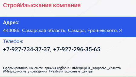 СтройИзыскания, компания по адресу 443086, Самарская область, Самара, Ерошевского, 3 в дальнейшем Организация, размещена в следующих категориях: