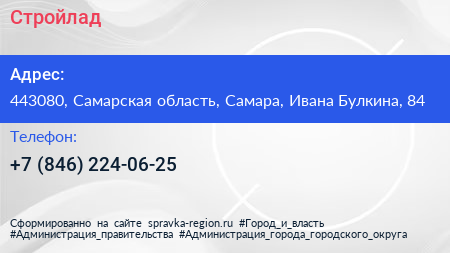 Стройлад по адресу 443080, Самарская область, Самара, Ивана Булкина, 84 в дальнейшем Организация, размещена в следующих категориях: