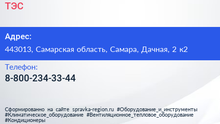 ТЭС по адресу 443013, Самарская область, Самара, Дачная, 2 к2 в дальнейшем Организация, размещена в следующих категориях: