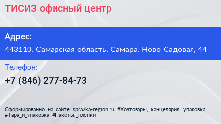 ТИСИЗ, офисный центр по адресу 443110, Самарская область, Самара, Ново-Садовая, 44 в дальнейшем Организация, размещена в следующих категориях: