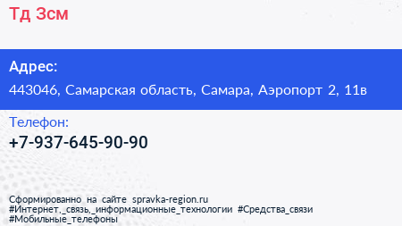 Тд Зсм по адресу 443046, Самарская область, Самара, Аэропорт 2, 11в в дальнейшем Организация, размещена в следующих категориях: