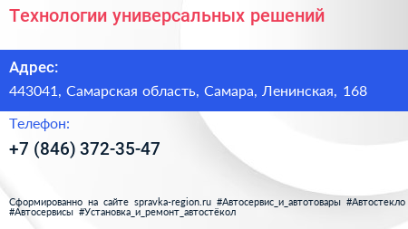 Технологии универсальных решений по адресу 443041, Самарская область, Самара, Ленинская, 168 в дальнейшем Организация, размещена в следующих категориях: