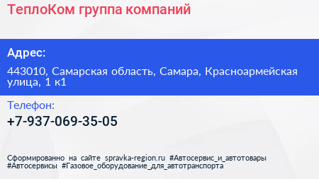 ТеплоКом, группа компаний по адресу 443010, Самарская область, Самара, Красноармейская улица, 1 к1 в дальнейшем Организация, размещена в следующих категориях: