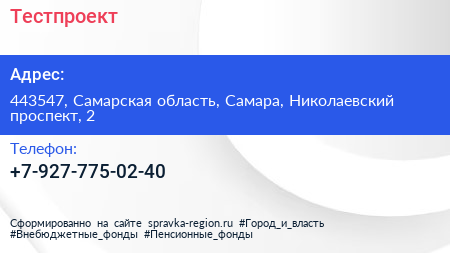 Тестпроект по адресу 443547, Самарская область, Самара, Николаевский проспект, 2 в дальнейшем Организация, размещена в следующих категориях: