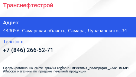 Транснефтестрой по адресу 443056, Самарская область, Самара, Луначарского, 34 в дальнейшем Организация, размещена в следующих категориях: