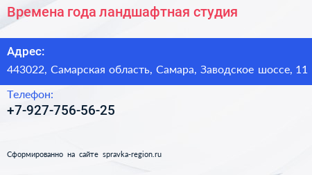 Времена года, ландшафтная студия по адресу 443022, Самарская область, Самара, Заводское шоссе, 11 в дальнейшем Организация, размещена в следующих категориях: