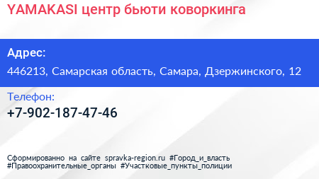 YAMAKASI, центр бьюти-коворкинга по адресу 446213, Самарская область, Самара, Дзержинского, 12 в дальнейшем Организация, размещена в следующих категориях: