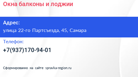 Окна, балконы и лоджии по адресу улица 22-го Партсъезда, 45, Самара в дальнейшем Организация, размещена в следующих категориях: