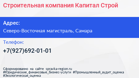 Строительная компания «Капитал-Строй» по адресу Северо-Восточная магистраль, Самара в дальнейшем Организация, размещена в следующих категориях: