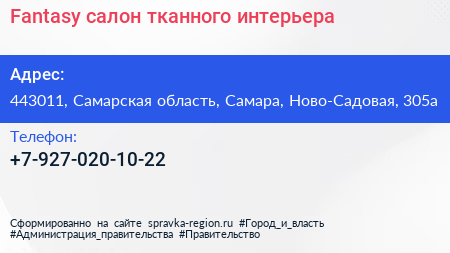 Fantasy, салон тканного интерьера по адресу 443011, Самарская область, Самара, Ново-Садовая, 305а в дальнейшем Организация, размещена в следующих категориях: