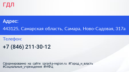 ГДЛ по адресу 443125, Самарская область, Самара, Ново-Садовая, 317а в дальнейшем Организация, размещена в следующих категориях: