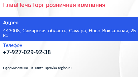 ГлавПечьТорг, розничная компания по адресу 443008, Самарская область, Самара, Ново-Вокзальная, 2Б к1 в дальнейшем Организация, размещена в следующих категориях: