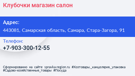 Клубочки, магазин-салон по адресу 443081, Самарская область, Самара, Стара-Загора, 91 в дальнейшем Организация, размещена в следующих категориях: