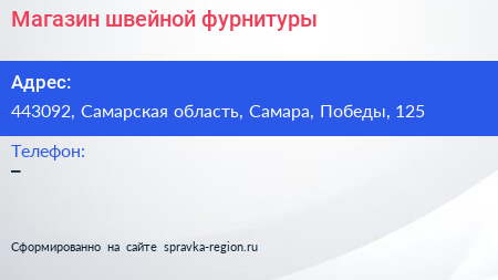 Магазин швейной фурнитуры по адресу 443092, Самарская область, Самара, Победы, 125 в дальнейшем Организация, размещена в следующих категориях: