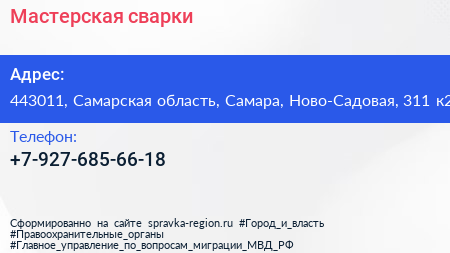 Мастерская сварки по адресу 443011, Самарская область, Самара, Ново-Садовая, 311 к2 в дальнейшем Организация, размещена в следующих категориях: