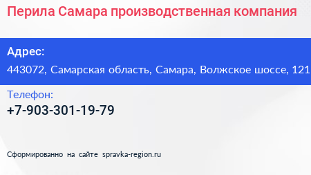 Перила-Самара, производственная компания по адресу 443072, Самарская область, Самара, Волжское шоссе, 121 в дальнейшем Организация, размещена в следующих категориях: