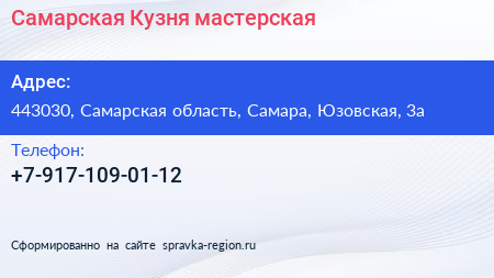 Самарская Кузня, мастерская по адресу 443030, Самарская область, Самара, Юзовская, 3а в дальнейшем Организация, размещена в следующих категориях: