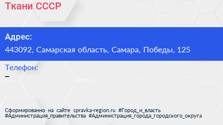 Ткани СССР по адресу 443092, Самарская область, Самара, Победы, 125 в дальнейшем Организация, размещена в следующих категориях: