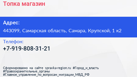 Топка, магазин по адресу 443099, Самарская область, Самара, Крупской, 1 к2 в дальнейшем Организация, размещена в следующих категориях: