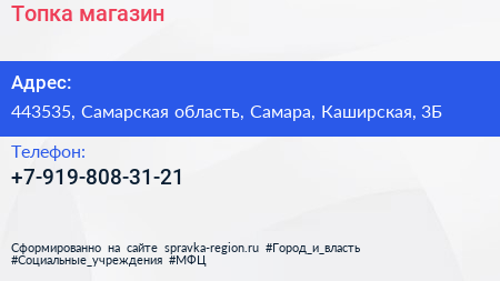 Топка, магазин по адресу 443535, Самарская область, Самара, Каширская, 3Б в дальнейшем Организация, размещена в следующих категориях: