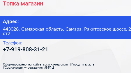 Топка, магазин по адресу 443028, Самарская область, Самара, Ракитовское шоссе, 2 ст2 в дальнейшем Организация, размещена в следующих категориях: