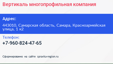 Вертикаль, многопрофильная компания по адресу 443010, Самарская область, Самара, Красноармейская улица, 1 к2 в дальнейшем Организация, размещена в следующих категориях: