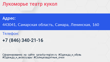 Лукоморье, театр кукол по адресу 443041, Самарская область, Самара, Ленинская, 160 в дальнейшем Организация, размещена в следующих категориях: