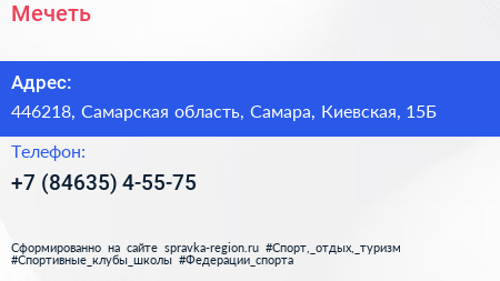 Мечеть по адресу 446218, Самарская область, Самара, Киевская, 15Б в дальнейшем Организация, размещена в следующих категориях: