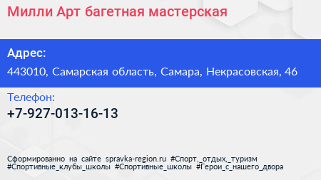 Милли-Арт, багетная мастерская по адресу 443010, Самарская область, Самара, Некрасовская, 46 в дальнейшем Организация, размещена в следующих категориях: