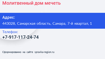 Молитвенный дом, мечеть по адресу 443028, Самарская область, Самара, 7-й квартал, 1 в дальнейшем Организация, размещена в следующих категориях: